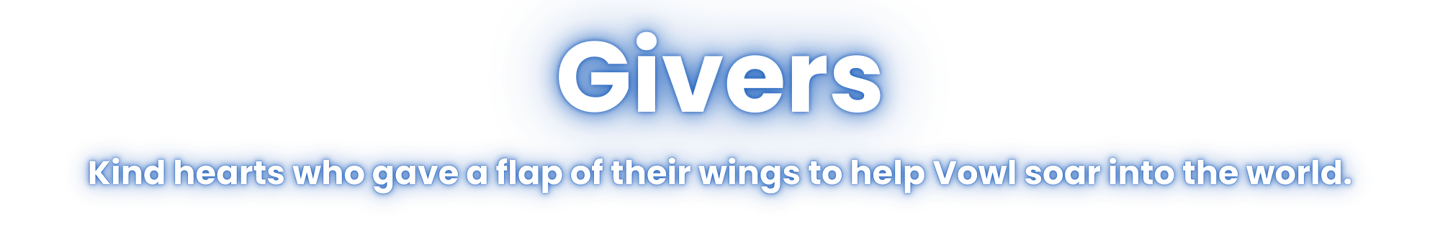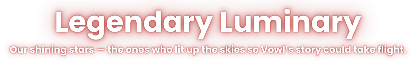 Vowl the Owl wouldn't be possible without the incredible support of our sponsors. Here's to the givers, the collectors, and the legendary lumineers who believed in us from the very beginning.